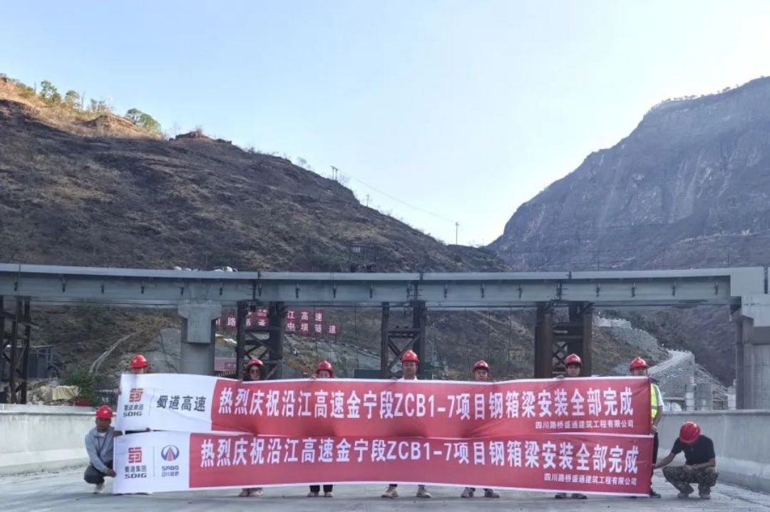 3月28日上午,沿江高速金宁段ZCB1-7项目全线钢箱梁顺利架设完成,标志着麻地坪互通通车目标攻坚战取得突破性胜利。