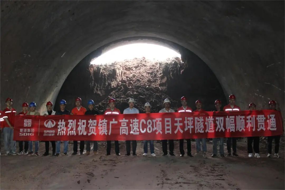3月27日下午,伴随着第一缕光亮照进隧道内,镇广高速通广段C8项目天坪隧道右洞顺利贯通。至此,天坪隧道左右幅均贯通,成为镇广高速在建项目全线首座双幅贯通的隧道。