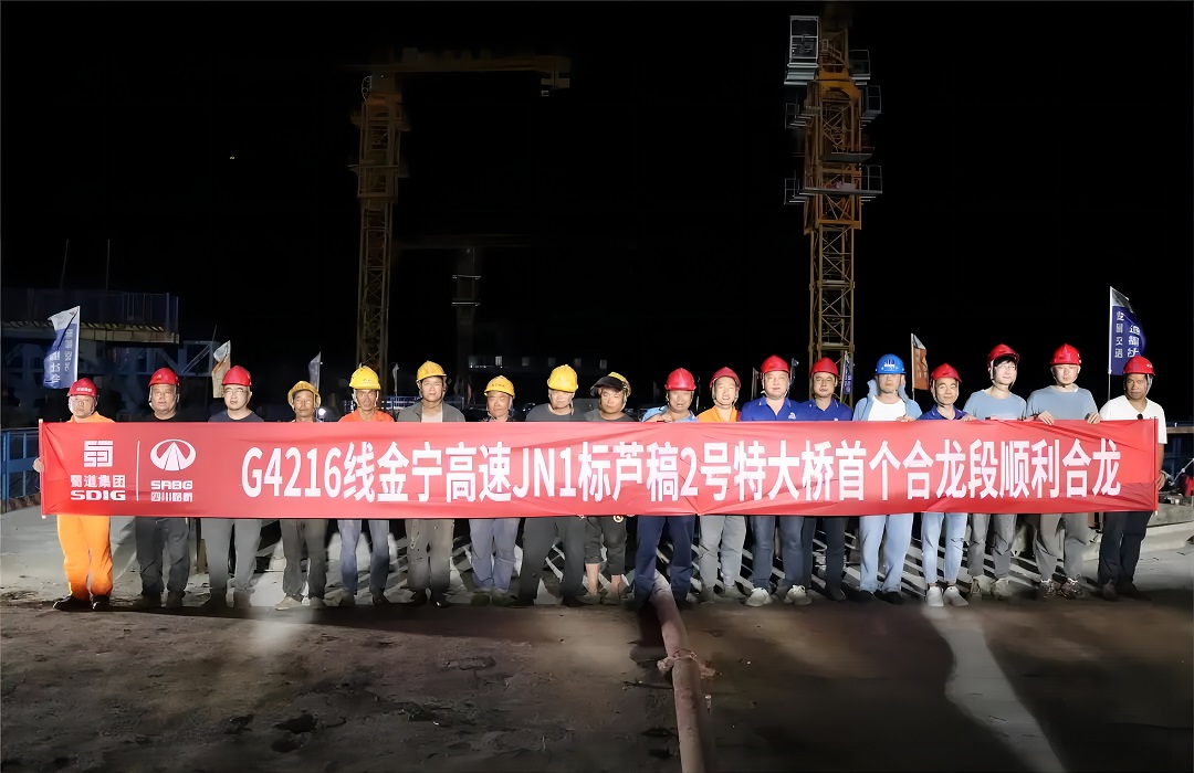 7月19日,伴随着最后一方混凝土浇筑完成,沿江高速金宁段芦稿2号特大桥首个合龙段顺利合龙,标志着金宁段ZCB1-1项目主体工程施工再次取得阶段性成果。