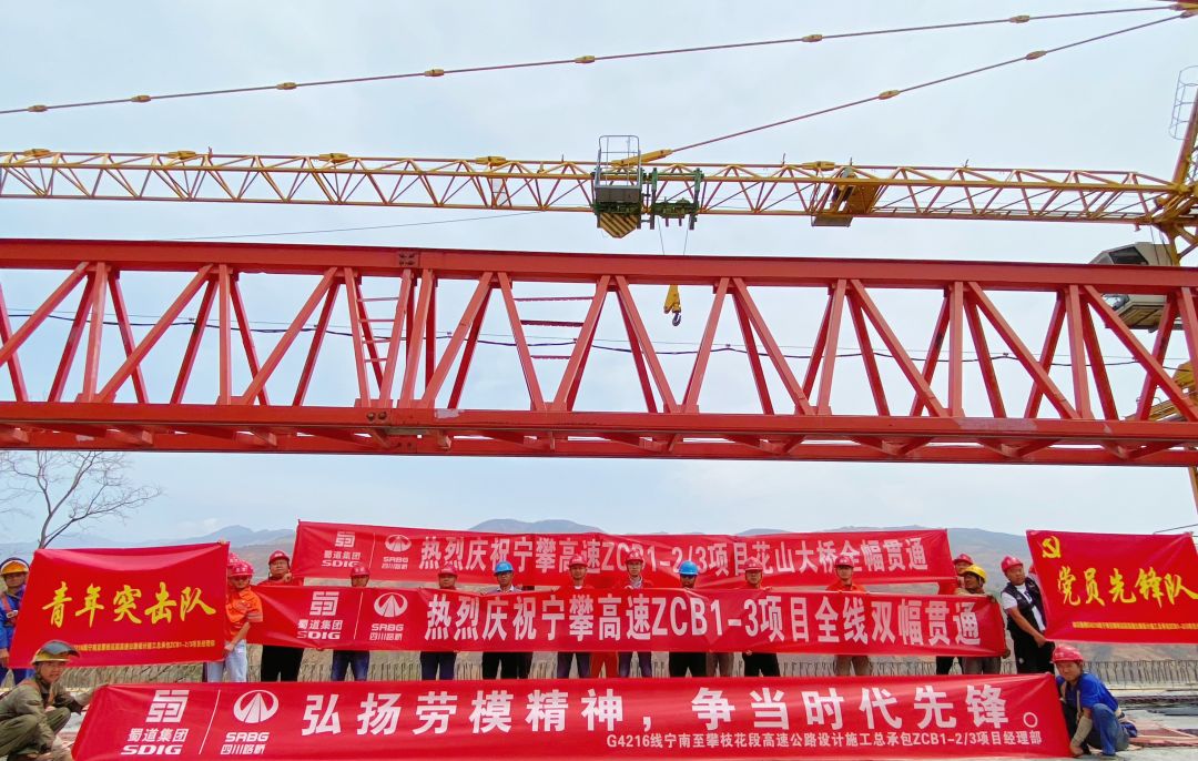 4月30日下午,重约140吨的花山大桥左幅最后一片T梁的平稳架设,沿江高速宁攀段花山大桥左幅123片预制T梁圆满架设完成,标志着沿江高速宁攀ZCB1-3标段顺利实现全线双幅贯通。