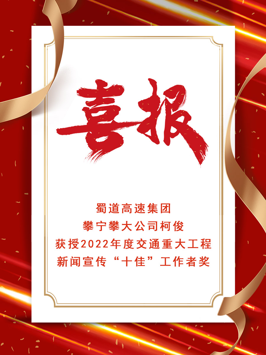 6月7日,攀宁攀大公司党委副书记、纪委书记柯俊受邀参加在贵州六盘水市举办的全国交通重大工程宣传采风活动,并获授2022年度交通重大工程新闻宣传“十佳”工作者奖。
