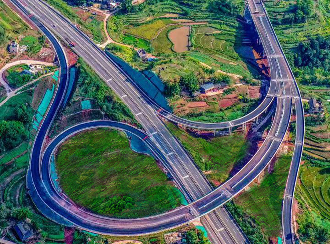 中和枢纽互通式立交位于奇峰镇,是泸永高速公路项目与 G8515 线荣昌至泸州高速公路交叉设置的枢纽型互通立交,中和枢纽互通主线设计长度为 1200m,荣泸高速改造段长度 1162m,匝道设计全长5613.706m,设置主线桥 2 座,匝道桥 4 座。