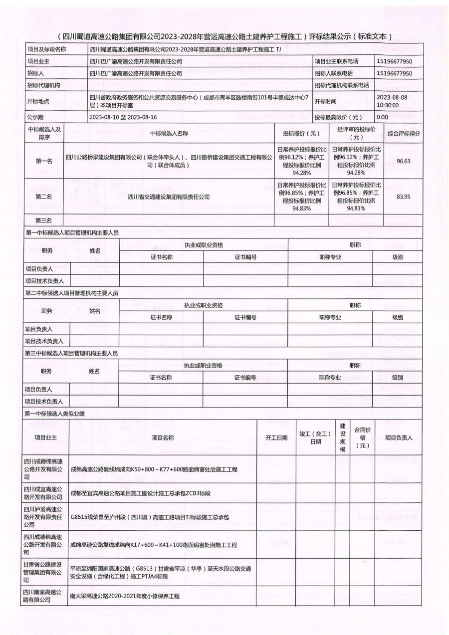 (BEVITOR·伟德国际2023-2028年营运高速公路土建养护工程施工)评标结果公示(标准文本)