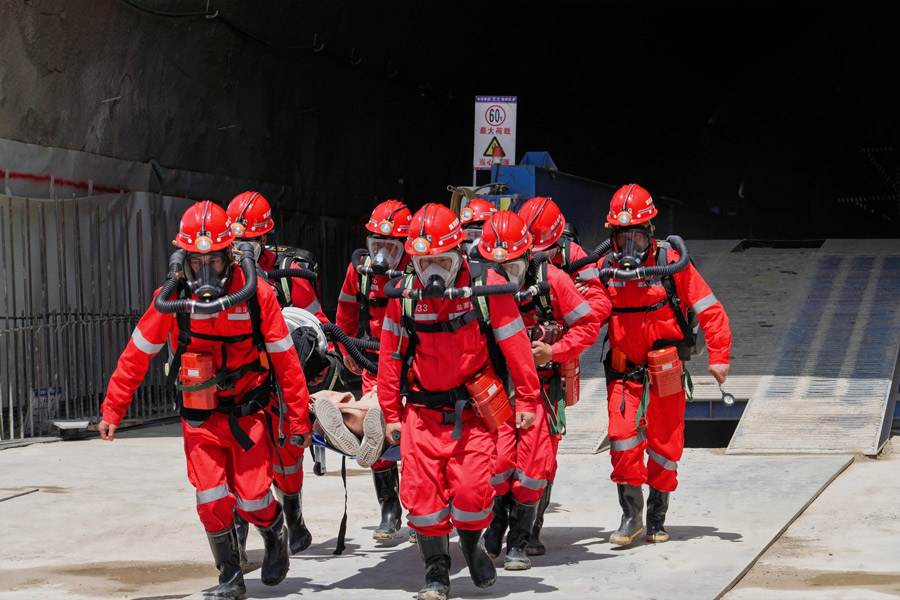 活动还模拟盐源县出现持续暴雨天气,加上受地震影响,导致现场驻地、低洼工区致险,隧道内掌子面出现坍塌,有毒有害气体疑似溢出导致多人受困等多类险情突发的隧道坍塌、防汛、防地质灾害综合应急救援演练。险情发生后,相关单位立即启动应急预案,快速作出应急响应,信息报送、应急预警、人员转移、搜救医护等演练科目逐一完成,随着应急救援小组与矿山救护大队将最后一名致险人员成功救出并转移医治,也标志着本次演练活动圆满完成。