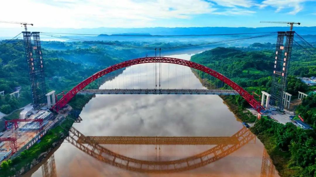 7月24日,随着最后一片拱下钢主梁精准落位安装,镇广高速C10项目白马渠江特大桥拱下钢主梁顺利合龙,标志着桥面工程加速,离全桥贯通目标更进一步。