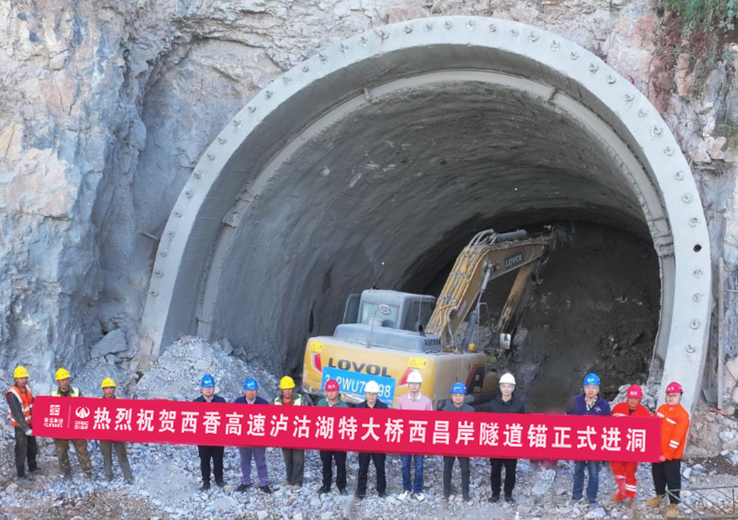 10月19日,西香高速泸沽湖特大桥西昌岸隧道锚顺利进洞,标志着泸沽湖特大桥关键工程两塔两锚全面开工取得标志性进展,为西香高速全面推进注入动力。