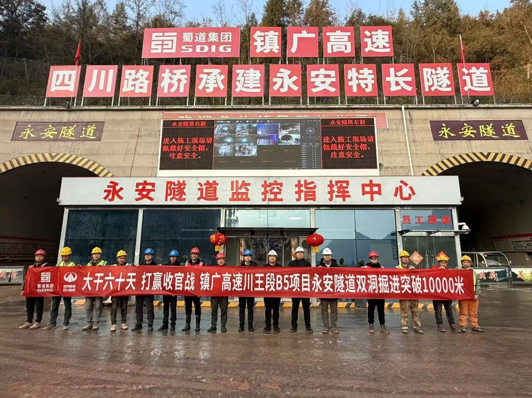 12月25日,镇广高速川王段B5项目永安隧道双洞累计掘进突破10000米大关,标志着项目建设取得重大进展。