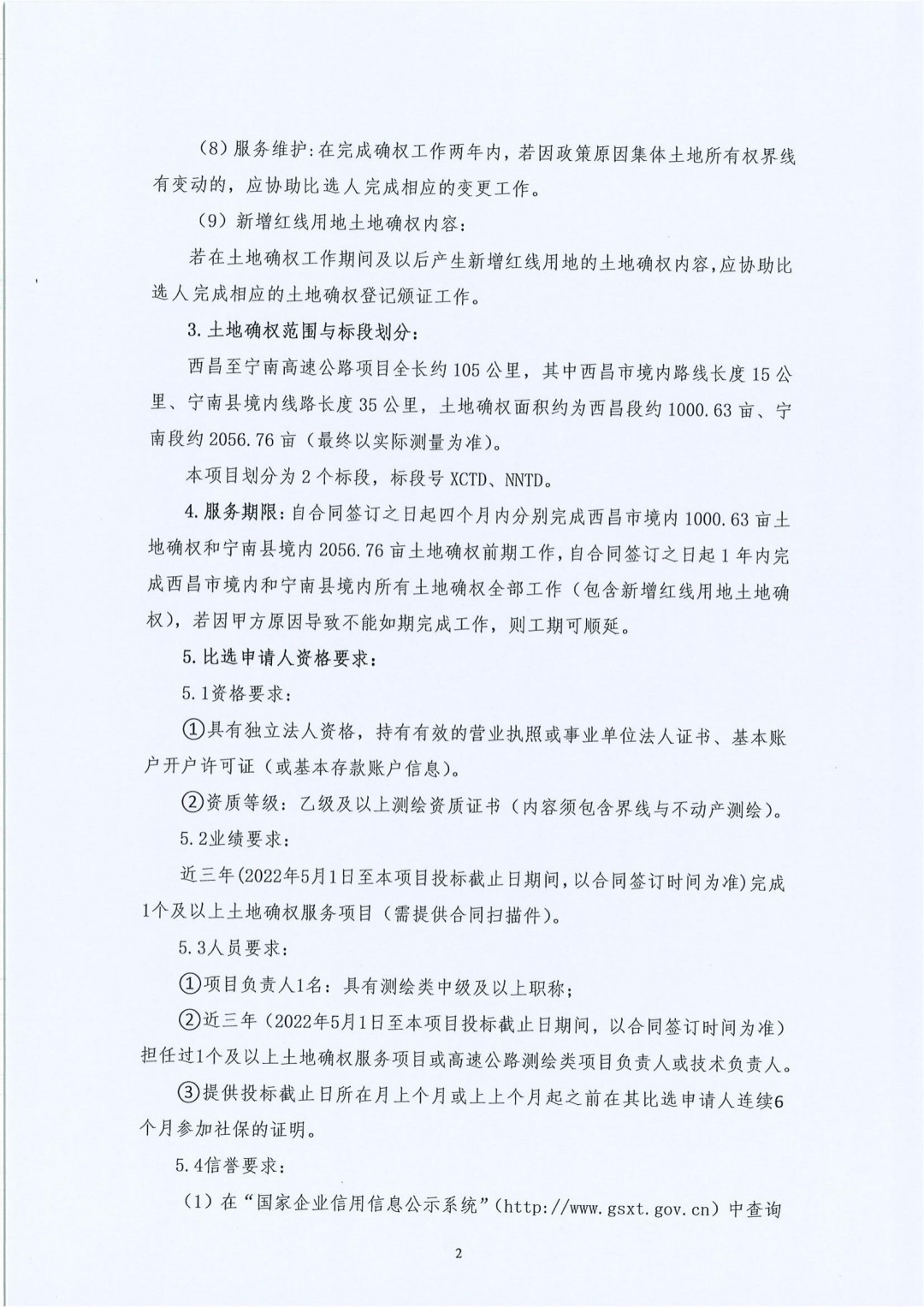 西昌至宁南高速公路项目西昌市境内土地确权技术服务XCTD标段、宁南县境内土地确权技术服务NNTD标段比选公告.pdf