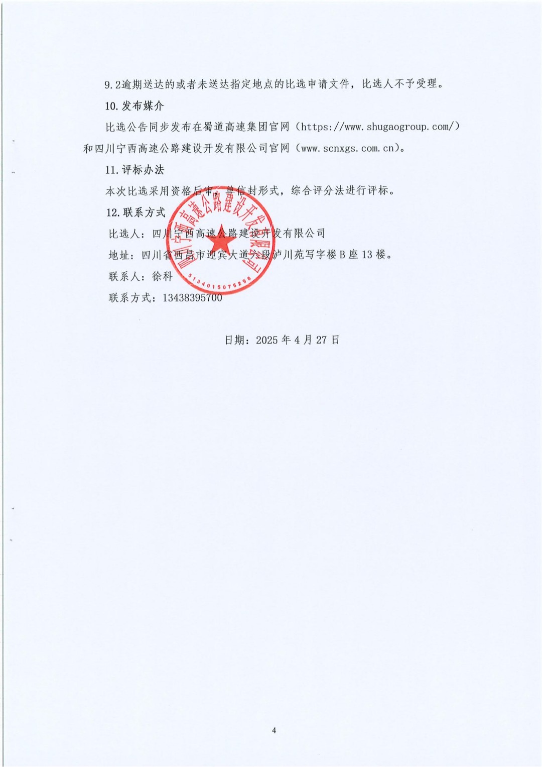 四川宁西高速公路建设开发有限公司机关食堂食材采购配送项目比选公告
