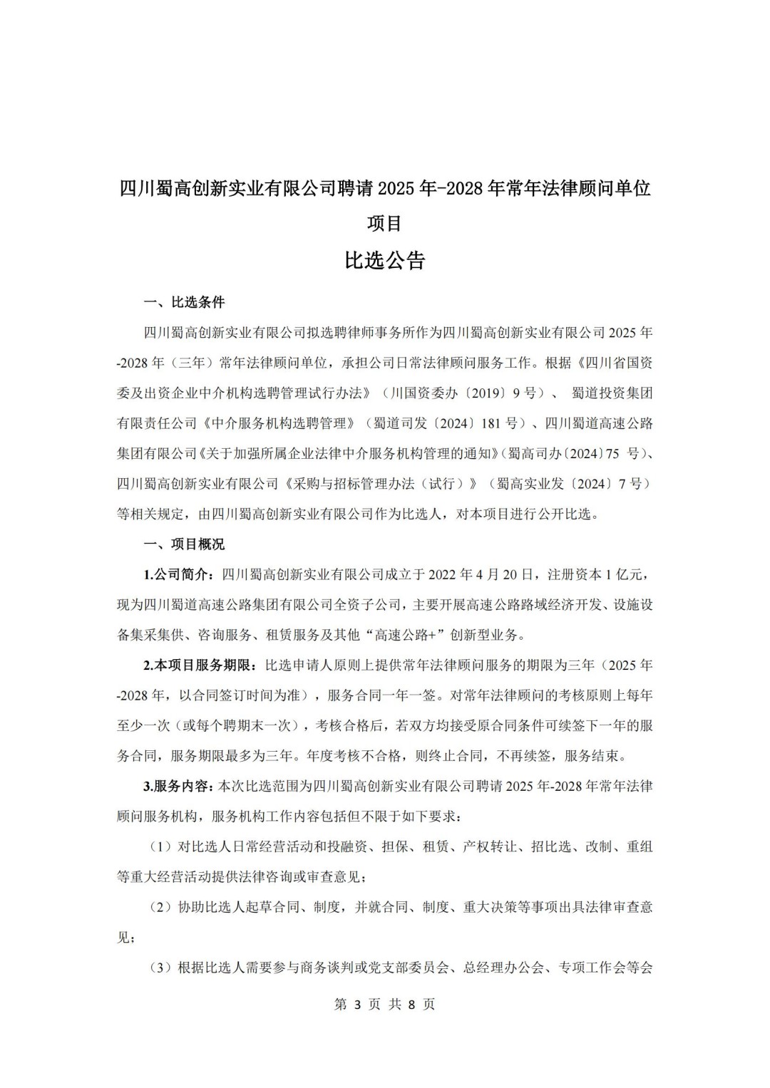 四川蜀高创新实业有限公司聘请2025年-2028年常年法律顾问单位比选文件.pdf